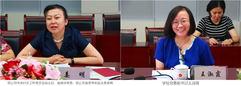 致公党中央妇女工作委员会副主任、省政协常委、致公党省委专职副主委姜明在会上讲话,她对学校在女性特色打造方面独特的优势和影响力给予成分肯定,并简要介绍了致公党山东省委在参政议政、民主监督、智库建设、服务地方经济发展方面的工作情况。她表示,致公党山东省委下一步将建设参政议政智库,发挥好民主党派的桥梁纽带作用,启动与高校的资源共享,智力互补与相互支持,为山东妇女事业发展做出成果做出成效。