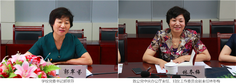 学校党委书记郭翠芬在会上致辞,首先对林冬梅一行莅临我校表示热烈的欢迎,对一直以来致公党中央妇女工作委员会、致公党山东省委对我校统战工作的支持与帮助表示衷心的感谢。她简要介绍了学校的历史沿革、发展情况,介绍了学校在女性教育、女性研究和应用型人才培养方面的特色,以及学校统战工作近些年取得的成绩。并希望能够与致公党中央妇女工作委员会、致公党山东省委有更多关于妇女儿童及老年服务方面的契合点,整合资源,加强合作,促进妇女理论研究与妇女发展实践相结合,更好的为妇女儿童事业发展和地方经济社会发展贡献力量。