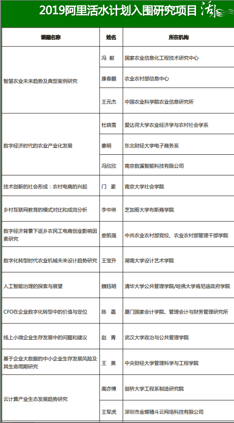 5月9日,阿里研究院发布2019年阿里活水计划入围学者和课题名单。来自北京大学、清华大学、中科院、中欧国际工商学院等国内知名高校,剑桥大学、麻省理工学院、芝加哥大学、密西根大学、伦敦大学、新加坡国立大学等国际高校,以及农业农村部信息中心、国家工业信息安全发展研究中心、中国科学院科技战略咨询研究院等相关机构的73位学者最终入围。我校工商管理学院张丰智讲师课题“数字经济下以创新为目标的反垄断与规制政策研究”入围,团队成员包括复旦大学经济学院寇宗来教授、山东大学经济学院牛帅副教授和山东财经大学姜琪教授。