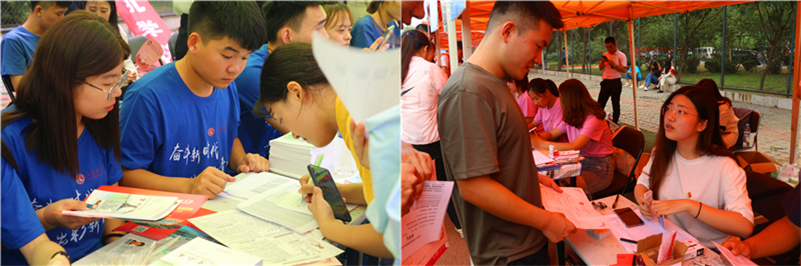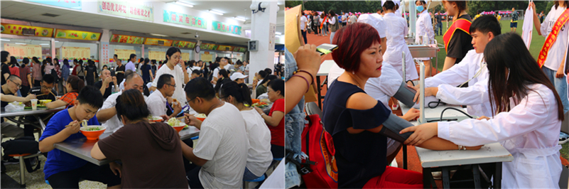 在各学院迎新点,各具特色的迎新方式吸引了众多目光。有的载歌载舞,有的身着异国服饰,有的亮出智能机器人,有的结合专业开展为新生家长量血压送健康活动,充分体现了不同学院、不同专业的特色与亮点。一顶顶帐篷依次排开,党员示范岗、党员服务窗口,以人为本、便捷高效、绿色畅通的迎新工作得到广大新生和家长的一致好评。