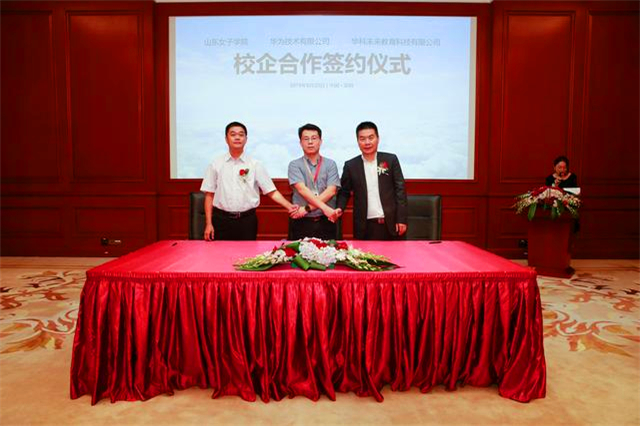 8月20日,学校与华为技术有限公司(简称华为)和华科未来教育科技有限公司(简称华科未来)共同举行战略合作签约仪式。华为技术有限公司Cloud BU全球合作伙伴业务部部长李勇刚、华为技术有限公司山东企业业务教育医疗业务部部长刘长成、华科未来教育科技有限公司董事长武恒君出席了签约仪式。学校科技产业管理处副处长杨洋、数据科学与计算机学院副院长孙洪峰参加了活动。签字仪式在华为总部深圳坂田基地举行。