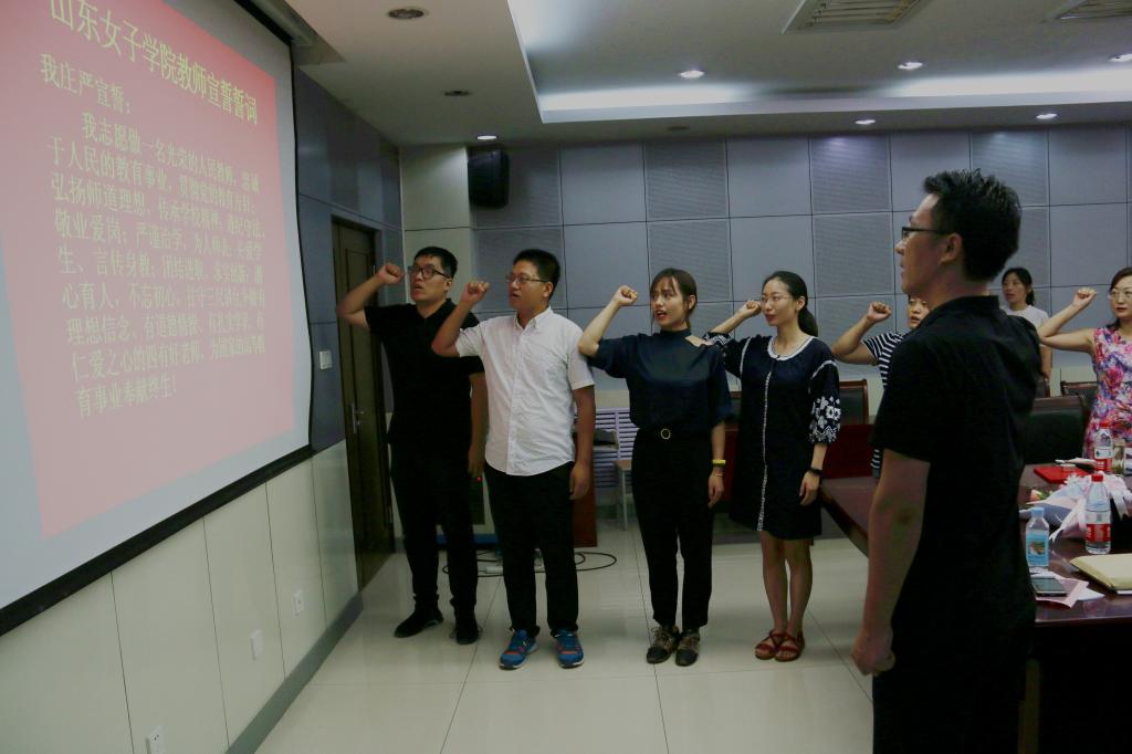 会上,举行了庄重的新入职教师宣誓仪式,表达了奉献教育事业的拳拳之心;从教满30年的教师代表发言,回忆了在女院教书育人的点点滴滴,分享与女院共同成长、发展的心路历程;学校“2019最美教师”代表感谢学校提供挥洒才能、展现自我的平台,并从爱岗敬业、甘于奉献、关爱学生等方面表达了对各自岗位的认识和工作感受;青年教师代表表达了融入女院的温暖和成长发展的收获。大家纷纷表示,今后将更加努力,以饱满的热情投入工作中,静下心来教书,潜下心来育人,以出色的成绩为学校发展做出更大贡献。与会职能部门教师结合岗位谈了思想体会,并表示要进一步解放思想、大胆创新,细致服务,精益求精,为学校中心工作做好服务与保障。