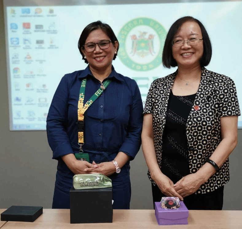 之后,我校访问团在远东大学(Far Eastern University),与该校副校长Michelle S. Acomular、MBA主管、会计学院、经管学院、酒店与旅游学院、国际交流处负责人进行了座谈。双方围绕旅游、会计、酒店管理等相关专业专升硕、本升硕、MBA项目进行了广泛探讨,交流了课程建设和专业合作问题,双方签署合作协议。座谈后,访问团参观考察了校园和部分实验室。
