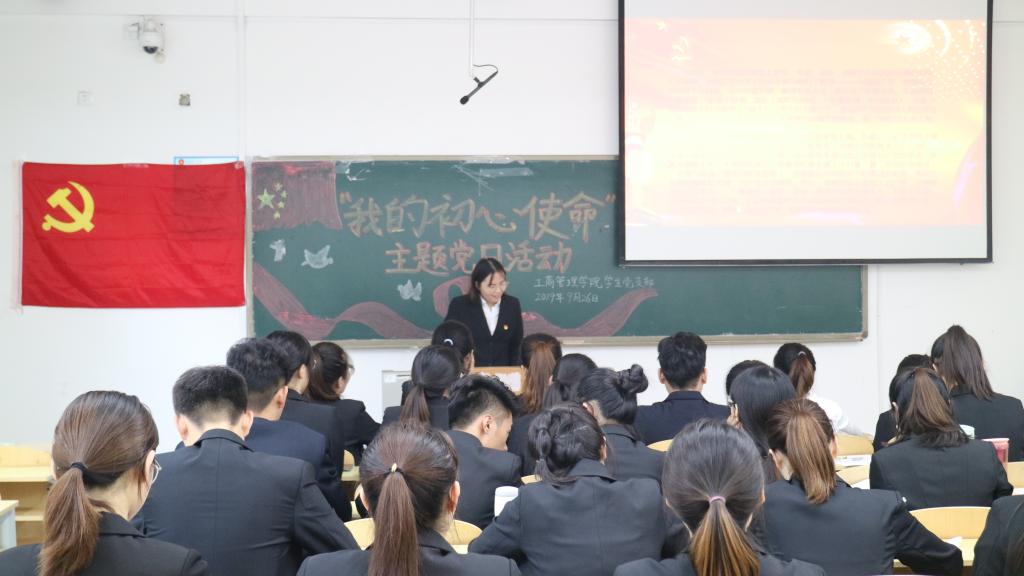为热烈庆祝新中国成立70周年,深入学习贯彻习近平总书记在“不忘初心、牢记使命”主题教育工作会议上的重要讲话精神,积极响应我校党委关于深入开展“不忘初心、牢记使命”主题教育实施方案的号召,加强对党员的爱国主义、集体主义和社会主义教育,工商管理学院学生党支部于9月26日下午1:50在博学104开展“我的初心使命”主题党日活动,组织我院学生党员开展“四个一”活动。本次活动通过接受革命传统教育,讲述入党故事,回顾建党的历史、再忆党的征程;通过经典诵读、重温入党誓词告诫学生党员不忘入党初心,牢记党员使命。工商管理学院学生党支部全体党员参加了本次活动。