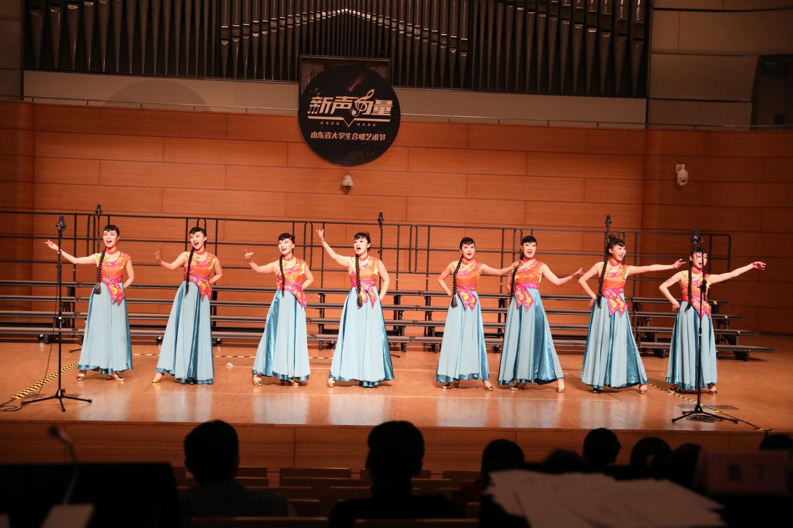 歌唱祖国,逐梦青春;新声力量,与时共燃。12月2日、3日,由山东省教育厅主办、山东大众报业集团承办,各市教育(教体)局、各高等学校、半岛都市报社协办的istep杯“新声力量”山东省大学生合唱艺术节暨2019山东省中小学教师合唱展示在青岛大剧院完美收官。我校音乐学院两支“俏妹”表演唱队经过一个月的紧张备赛,在全省近160支参赛队伍中脱颖而出,以精巧的演唱技艺、默契的团队配合再次惊艳全场,荣获乙组(专业组)一金一银的好成绩。