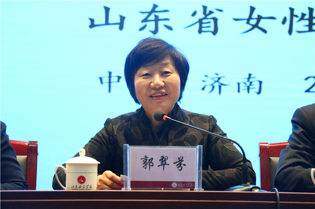 郭翠芬在致辞中指出,女性人才作为人才资源的重要组成部分,是推动经济社会全面协调可持续发展和人类文明进步的强大动力。新中国成立70年来,特别是改革开放以来,国家为女性人才成长和作用发挥创造了良好的社会环境,各行业、各类型女性人才数量有了显著提高,女性人才队伍不断发展壮大。同时,必须认识到,我国女性人才还存在质量不高、女性就业率高但层次相对较低等诸多问题,女性人才的总体状况和在经济社会发展中发挥的作用与新时代高质量发展的要求还存在一定的差距。因此,全社会都应当进一步加强对高层次女性人才的关注和重视,努力培养造就一支结构合理、素质优良的女性人才队伍,为全面建成小康社会提供强有力的智力支撑。在这样的背景和形势下,成立山东省高等教育人才研究会女性人才专业委员会恰逢其时,对于进一步提高女性人才工作水平,促进我省女性人才成长和妇女事业发展具有重要意义。
