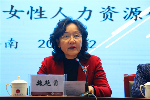 魏艳菊在讲话中,代表山东省妇联对女性人才专委会的成立表示祝贺。她指出,女性作为推动经济发展和社会进步的重要力量,是我国人才结构中的重要资源,尤其是随着社会的发展进步,占人口总数一半左右的女性作为重要的人才资源,在我国经济和社会发展中所起的作用越来越突出,已经成为一支不可忽视的重要生力军。山东省高等教育人才研究会女性人才专业委员会的成立,对于深入贯彻落实“人才强国”“人才强省”战略部署,推动建立政府、高校、企业“三位一体”的融合沟通机制,提高女性人才工作科学化水平,促进我省女性人才成长和妇女事业发展具有重要意义。希望山东省高等教育人才研究会女性人才专业委员会以本次成立大会为契机,进一步找准工作切入点、发力点和着力点,充分发挥在女性人力资源开发、引领女性人才成长、妇女/性别研究等方面的重要作用,协调和组织女性人才研究力量,着力研究和探讨改革开放和社会主义现代化建设新时期的女性人才发展问题,为政府政策研究和妇女工作决策提供科学依据。同时以此为平台,加强优秀女性人才的联谊交流,充分展示交流女性人才研究领域的优秀成果,推动女性人才更好地成长,促使女性人才为经济社会发展做出更大的贡献。为了更好地促进我省妇女事业发展,山东省妇联将大力支持女性人才专业委员会的各项建设工作。
