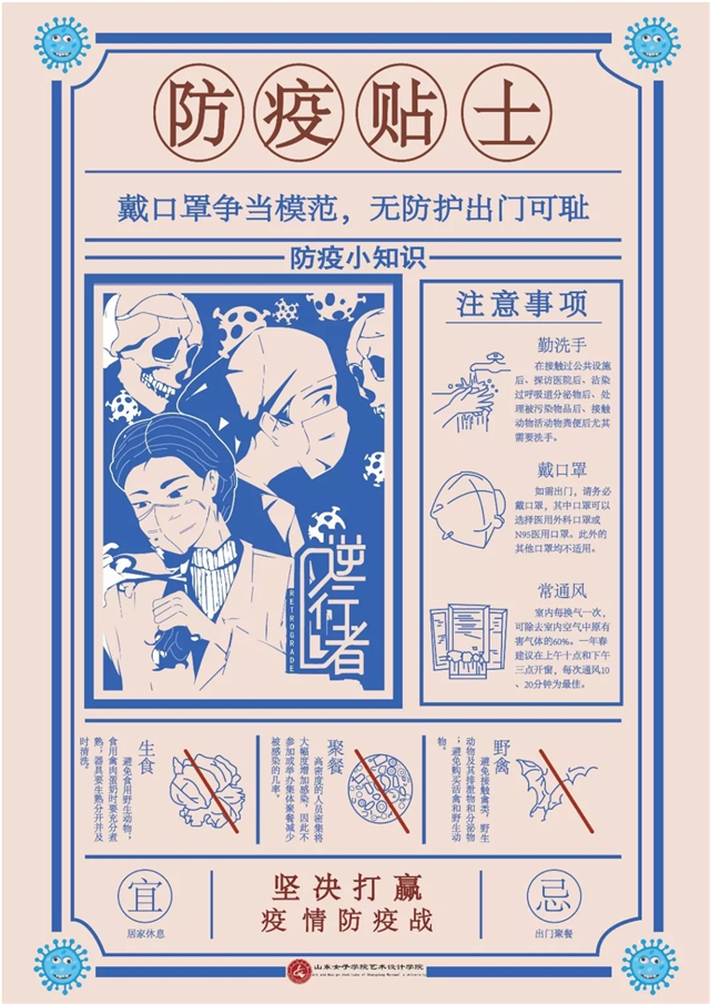 当前,新型冠状病毒肺炎疫情防控工作牵动着女院学子的心。艺术设计学院近日组织开展“打赢疫情阻击战,艺术青年共发声”系列活动,同学们充分发挥专业特长,以艺术创作的形式为疫情防控工作助力加油,短短一周内创作了近百幅作品。他们用画笔和真情为夺取这场疫情阻击战的最终胜利贡献自己的青春力量!