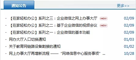 开通网上办事大厅,上线“用印申请”“邮箱开通”“密码重置”等十几个办事流程,为学校事务办理提供便捷高效的方式;为每位教职工配备100G邮箱,开通了学校微盘和部门微盘,用于存放、共享工作文档,摆脱了办公电脑不在身边带来的各种不便;开通视频会议服务,支持300人同时在线召开视频会议,保证特殊时期工作得到及时部署;研发值班提醒程序,参与值班的人员提前一天会收到值班提醒信息,确保特殊时期的正常值班秩序。