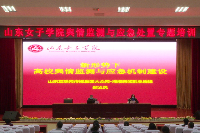 3月31日上午,学校在图书馆第二报告厅举办舆情监测与应急处置专题培训,特邀山东互联网传媒集团大众网•海报新闻副总编辑郑义风作了题为《新形势下高校舆情监测与应急机制建设》的专题报告。校党委副书记王淑霞出席并主持了报告会。学校舆情应急处置专家团队成员、网络舆情信息员和媒体工作人员等参加了培训。