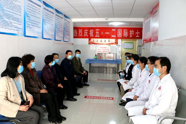 在第109个国际护士节来临之际,5月12日下午,学校校长盛国军、党委副书记王淑霞、副校长贺兴利在校工会妇委会、后勤管理处负责人陪同下,代表学校亲切看望慰问校医院医护工作者,并送上节日祝福。