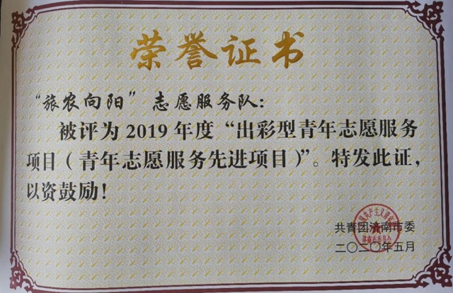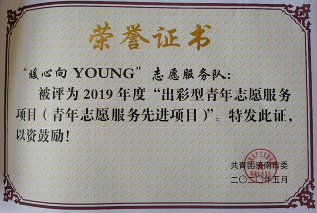 近日,共青团济南市委公布《关于2019年度济南市五四出彩典型的表扬通报》,学校1人获“出彩型团员”,1人获“出彩型团干部”,1个学生社团获“出彩型青年志愿服务集体”,3个项目获“出彩型青年志愿服务项目”。