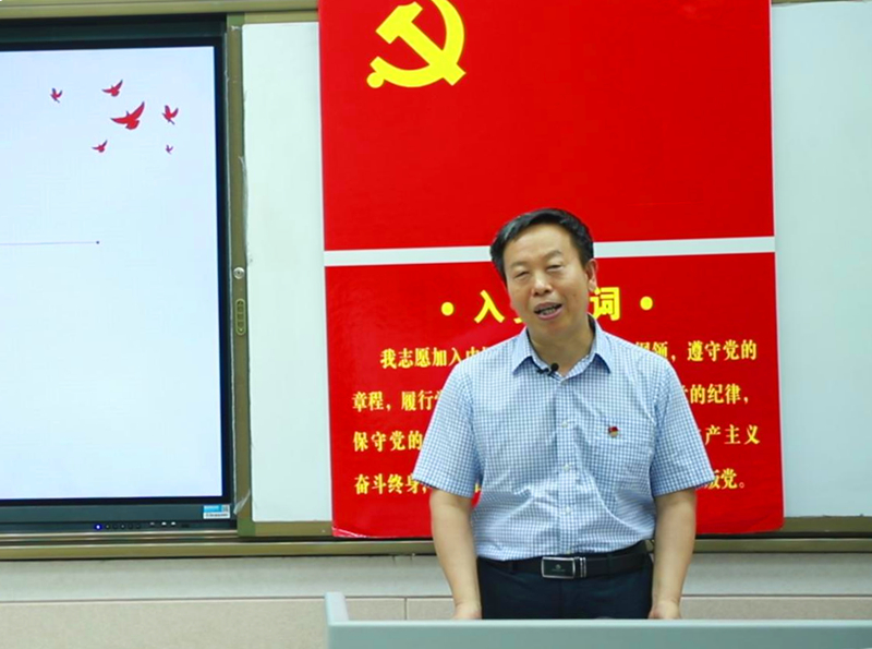 党委副书记、校长盛国军深入教育学院为毕业生党员上了一堂以“青春之心永向党,扬帆起航新征程”为主题的党课。盛国军面向学生党员提出四点要求:一要对自己有科学精准的定位,将个人的发展目标与党在新时代的社会主义建设任务相结合。二要学会吃苦,从细节做起,勤勉工作。三要坚守做人做事的底线,学会忍让和谦和。四要追求共产主义远大理想,提高政治站位,将理想追求和现实生活相结合,实现梦想。最后,他深情祝愿毕业生们未来一帆风顺,万事如意。