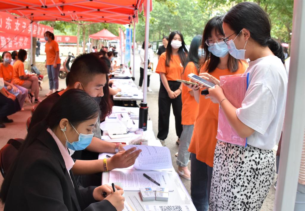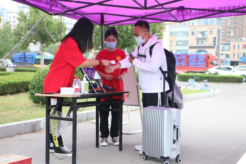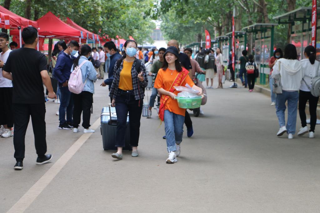 迎新期间,校园内随处可见一群志愿者的青春身影,他们为新生测温、指路,运送行李,志愿者们的一张张笑脸构成了校园里最美丽的一道风景线。散布校园各处的迎新服务点为新生们提供报到流程介绍、行李运送、临时休息、引路等一系列热情周到的服务。