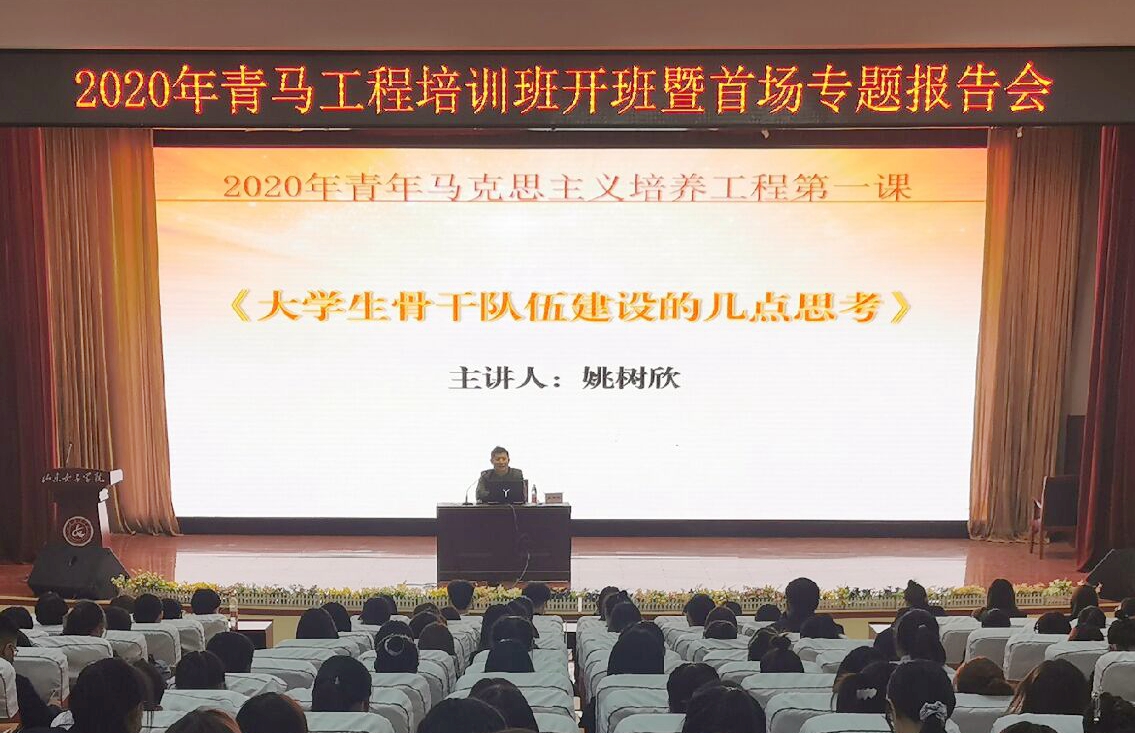 开班仪式后,姚树欣为2020年青马学员讲授培训班第一课。他以《大学生骨干队伍建设的几点思考》为题,结合自身经历,从大学生骨干的内涵、作用,大学生骨干应具备的素质和能力以及如何强化大学生骨干素质培养等方面做了详细的讲解。他强调大学生骨干具有导向性、辐射性、示范性和桥梁纽带作用,要不断加强自律性,严格要求自已,做好上情下达和下情上传工作,才能符合时代要求、学校期望和学生期许。整场报告理论联系实际,辅以鲜活的案例剖析,以生动形象、通俗易懂的语言阐释了一名优秀学生干部应具备的素质和能力,使同学们受益匪浅。教育学院袁修竹同学在听完讲座后表示:“本次培训课程让我对如何做一个称职的学生干部有了更加深刻的认识,在以后的学习和工作中,我会更加严格的要求自己,尽快成长为一名优秀的学生干部。”
