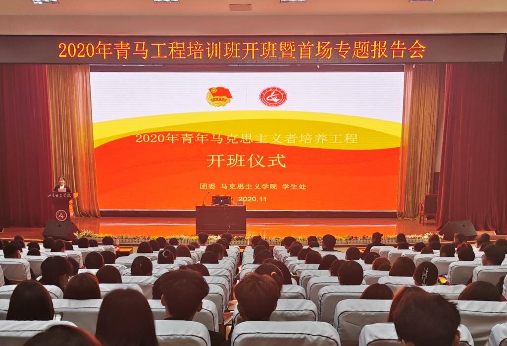11月12日下午,2020年青年马克思主义者培养工程(以下简称“青马工程”)培训班开班仪式暨首场专题报告会在图书馆C座二楼报告厅举行。学校马克思主义学院院长姚树欣担任主讲嘉宾,2020级新生团支书、班长,校院两级学生会、自律会、部分学生社团学生骨干及各学院入团积极分子代表近300名学员参训。