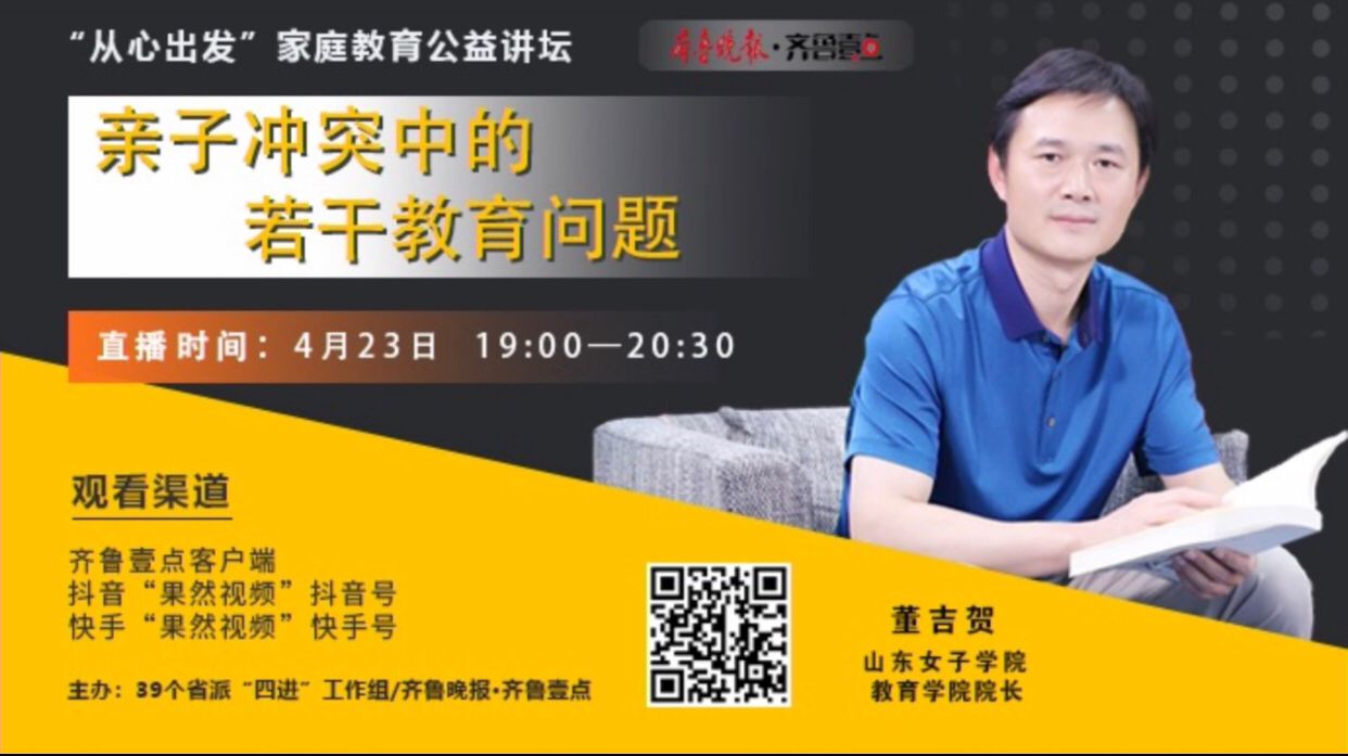 教育学院院长董吉贺教授和陈晓燕副教授受省派“四进”工作组和齐鲁晚报·齐鲁壹点邀请,做客“从心出发”家庭教育公益讲坛,在疫情期间带来题为《亲子冲突中的若干教育问题》的公开课,帮助家长们解答了教育困惑,全网视频直播总收看量超过200万,专家学者的专业辅导和耐心讲解,使观众感觉受益匪浅。