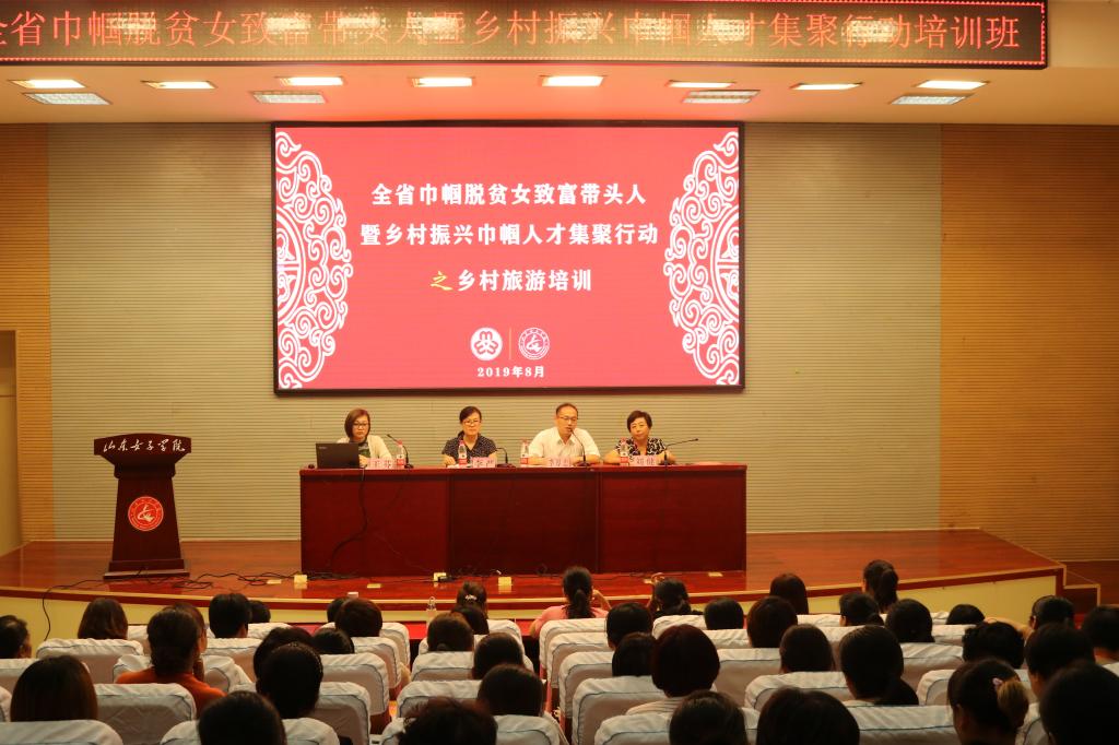 为深入贯彻落实中央和省委脱贫攻坚和乡村振兴战略部署,深入实施“巾帼脱贫行动”和“乡村振兴巾帼行动”,创新创业学院与山东省妇联发展部共同承办乡村振兴巾帼人才集聚行动培训班。通过精心设置聚焦乡村振兴的精准创业专题讲座,组织学员现场教学活动,在创新创业、家庭教育、乡村旅游、电子商务等方面开展专业培训,将创新创业教育延伸至社会舞台,助力脱贫攻坚和乡村振兴。
