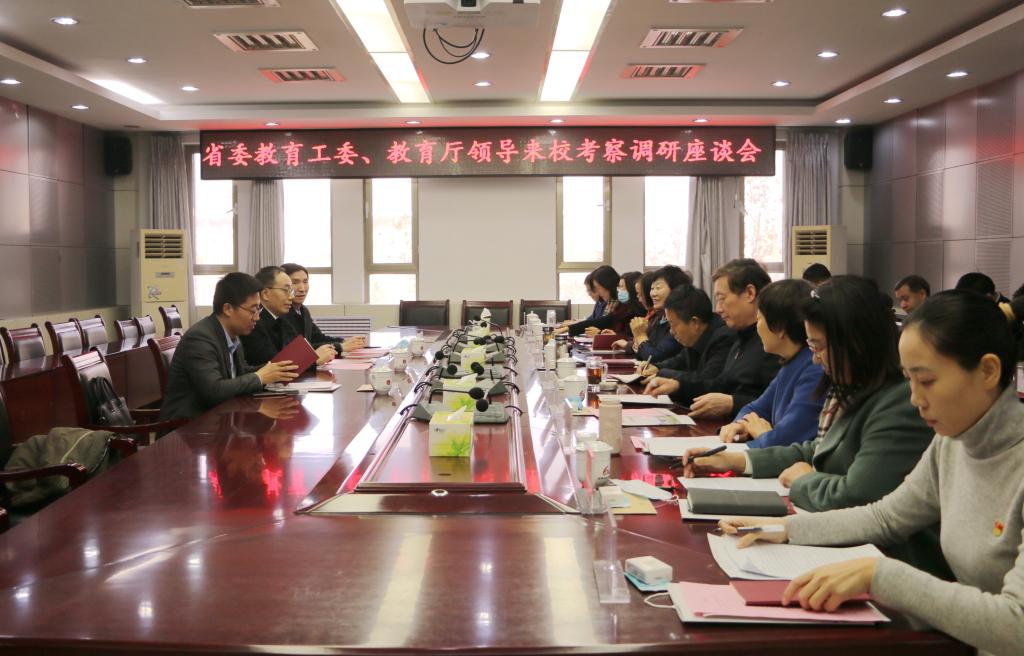 12月22日上午,省委教育工委副书记,省教育厅党组副书记、副厅长冯继康,省教育厅(省委教育工委)高校干部处处长袁广全,思想政治工作处(学校宣传教育处)处长陈成标一行3人来校调研指导工作。校领导郭翠芬、盛国军、王淑霞、贺兴利、黄晓彦、侯素美、刘恩允等热情接待了冯继康一行,学校职能部门和部分院部党政负责人参加座谈。