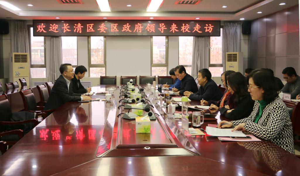 12月22日下午,长清区委副书记、代理区长肖辉一行4人来校座谈交流,校长盛国军、党委副书记王淑霞、副校长贺兴利、纪委书记黄晓彦、副校长侯素美、副校长刘恩允参加座谈。