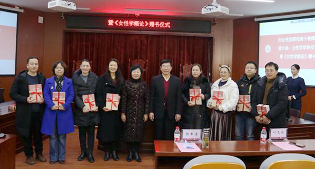 为贯彻落实科研强校战略,聚焦女性学学科建设,推动多学科交叉打造科研特色,12月24日下午,妇女/性别研究骨干教师培训班第六讲女性学学科交叉研究暨《女性学概论》赠书仪式在博文楼110模拟法庭召开。党委书记郭翠芬、中国妇女研究会副会长、学校特聘教授叶文振出席赠书仪式。各学院科研负责人、相关处室代表以及妇女/性别研究骨干教师培训班成员60余人参加会议。会议由妇女研究与发展中心负责人主持。