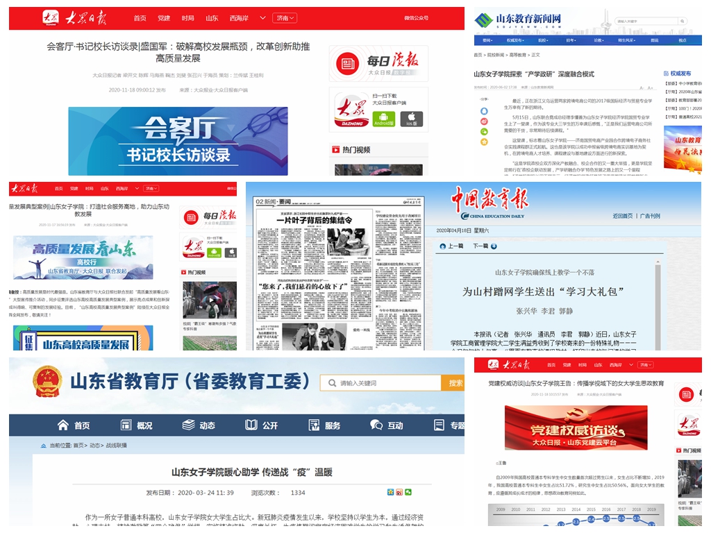 本年度学校官方网站发布新闻共366条,官方微信发布新闻382条。“改革经验”被国家级媒体报道8项,累计10篇,被省内媒体报道52项,累计71篇。年内推送单条新闻最高新闻阅读量超过200万人次,官微粉丝数量由去年的3万人增涨到今年的3.7万人;抖音官方账号推送短视频近百条;推文“女院考研人”被人民日报、央视新闻、共青团中央、中国妇女报、山东省教育发布等媒体转发,展示了学校的优良学风。全年在学习强国、中国教育报、中国妇女报、中国青年网、大众日报、山东教育发布等国家和省级主流媒体报道108次,有效宣传了学校的办学理念、发展特色和成就,为学校快速发展营造了良好舆论氛围,推动了学校影响力和美誉度的不断提升。