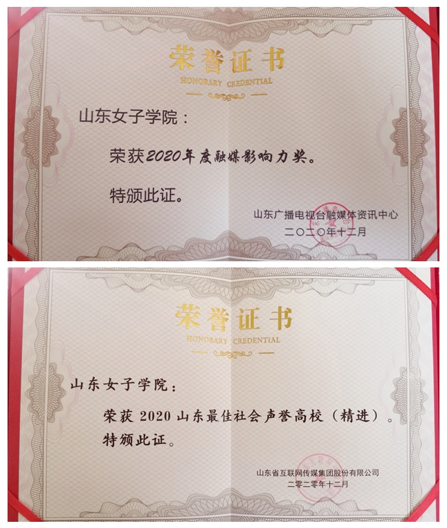 近日,由山东省互联网传媒集团主办的2020山东教育品牌建设与传播管理研讨会在济南举行,学校荣获“山东最佳社会声誉高校”奖,王春晓、朱东泽被评为“山东教育领域优质融媒体内容创作人”称号。此前,学校还获得由山东广播电视台评选出的2020年“融媒影响力奖”和齐鲁晚报评选出的融媒传播“最具吸引力高校”奖。