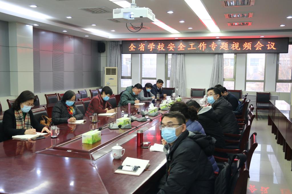 1月29日下午,全省教育系统安全工作专题视频会议召开。省委教育工委常务副书记、省教育厅党组书记、厅长邓云锋出席会议并讲话,学校在行政办公楼第三会议室设立分会场,学校领导班子成员,相关部门、单位负责人参加视频会议。