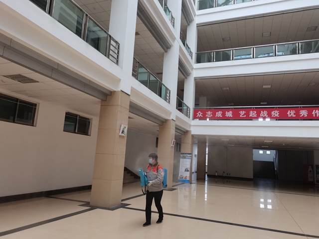 山东圣翔节能科技有限公司和山东中家集团分别向学校捐赠疫情防控消杀物资,并组织专业人员对学校教学、办公、公寓等内部公共区域进行全面消杀,为新学期迎接学生分批错峰返校创造安全卫生的学习、生活环境。