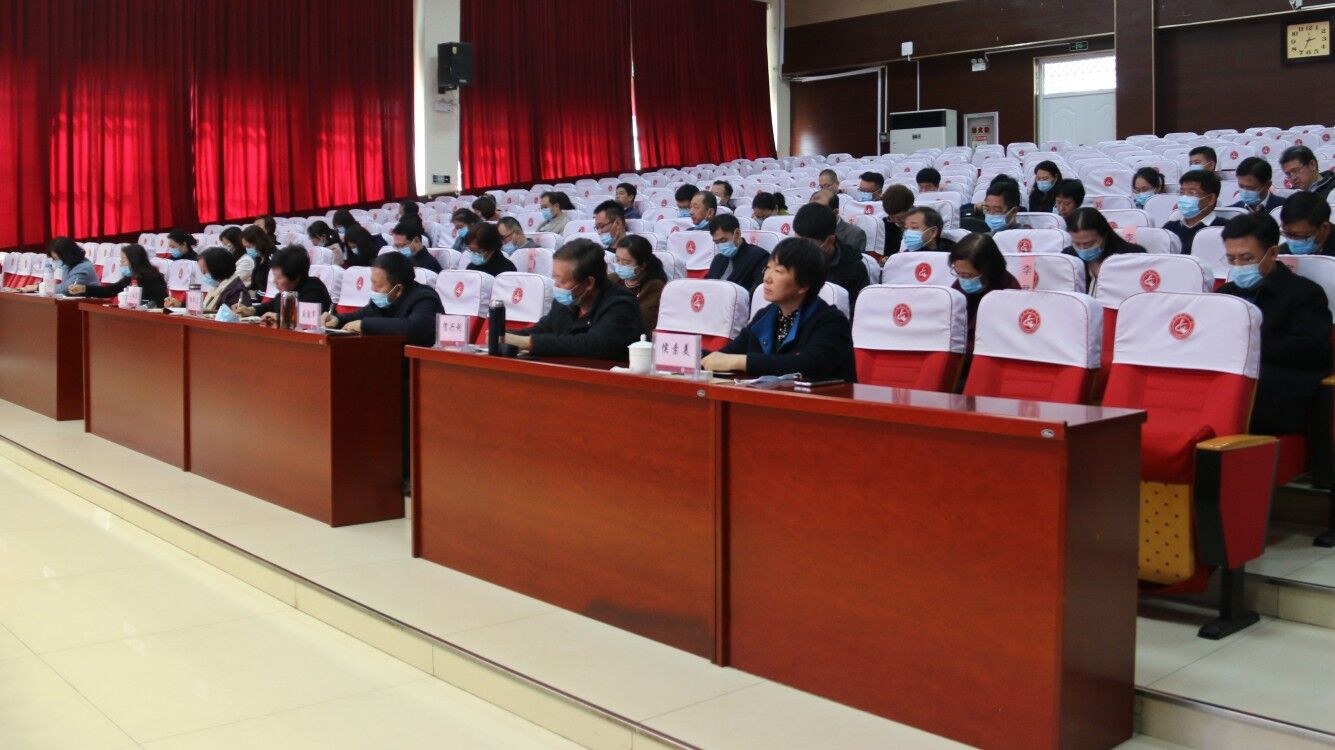 学校领导班子成员,各部门、单位党政主要负责人在图书馆二楼报告厅分会场参加视频会议。
