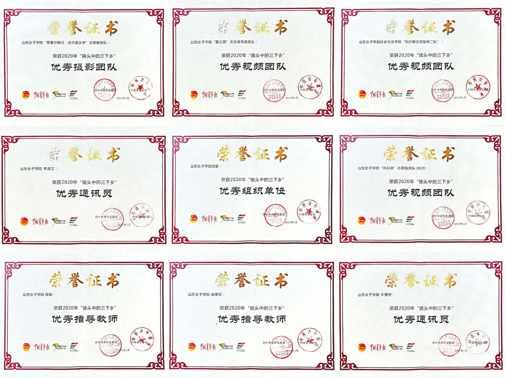 近日,2020年全国大中专学生志愿者暑期“三下乡”社会实践“镜头中的三下乡”成果遴选结果公布。学校团委荣获优秀组织单位,曲常军等2位教师荣获“优秀指导教师”称号,牛斐然等2名同学荣获“优秀通讯员”称号,“青春你我行,助力家乡梦”志愿服务队荣获“优秀摄影团队”,“向日葵”志愿服务队等3支实践团队荣获“优秀视频团队”。