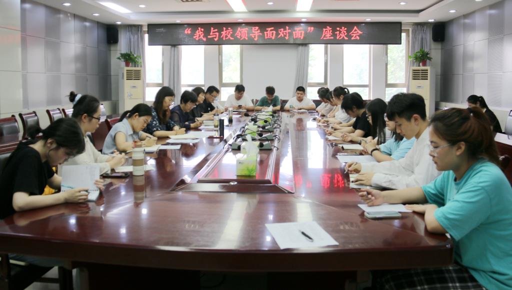 6月10日下午,学校组织召开“我与校领导面对面”座谈会。党委书记郭翠芬,党委委员、副院长侯素美,党委宣传部、团委相关负责同志与学校部分社团的学生代表座谈交流。