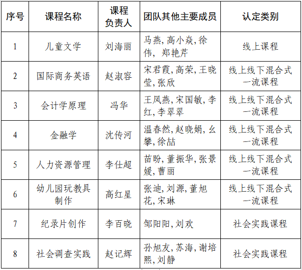 学校第二批省级一流本科课程名单