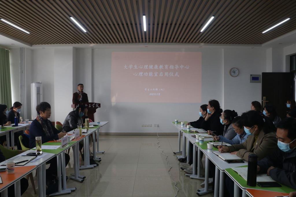 郭翠芬在讲话中指出,一是要高度重视学生心理健康教育工作。近几年来,学校在人、财、物方面加大支持力度,配齐配强了心理健康专业教师,为心理健康教育工作顺利开展提供了保障。希望大家高度重视,把心理健康教育工作抓好抓实。二是从严从实从细抓好心理健康工作。坚持问题导向、目标导向、成果导向,从细节入手,加强谋划,切实抓到位、抓出成效。三是以创建省级心理健康教育示范中心为目标,以心理功能室启用为契机,着力打造心理健康工作队伍培训平台、学生心理健康教育平台、大学生心理问题研究平台、心理困难学生服务平台。