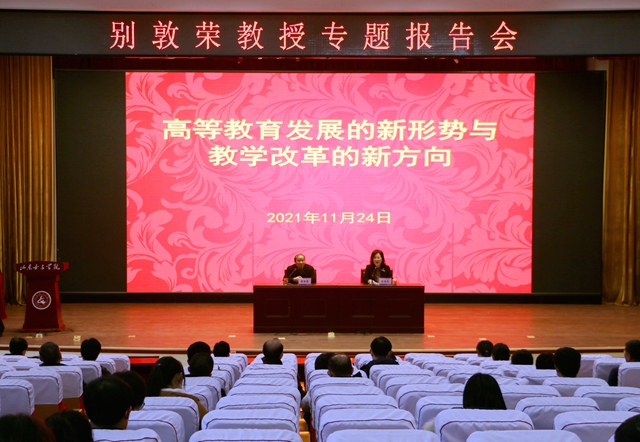 11月24日下午,厦门大学别敦荣教授应邀来校作题为“高等教育发展的新形势与教学改革的新方向”的专题报告。报告会由副院长刘恩允主持,学校全体处科级干部、各教研室主任参加。