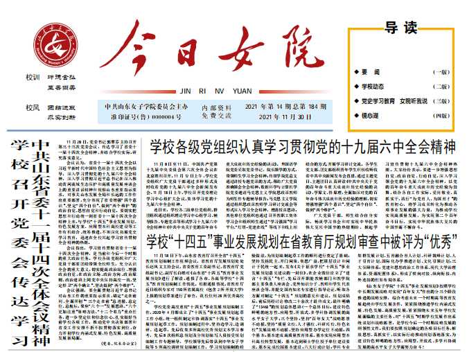 日前,2020年度“山东省高校校报好新闻奖”评选结果揭晓,学校校报《今日女院》推荐的作品从57个单位的548件作品中脱颖而出,获得5项二等奖。