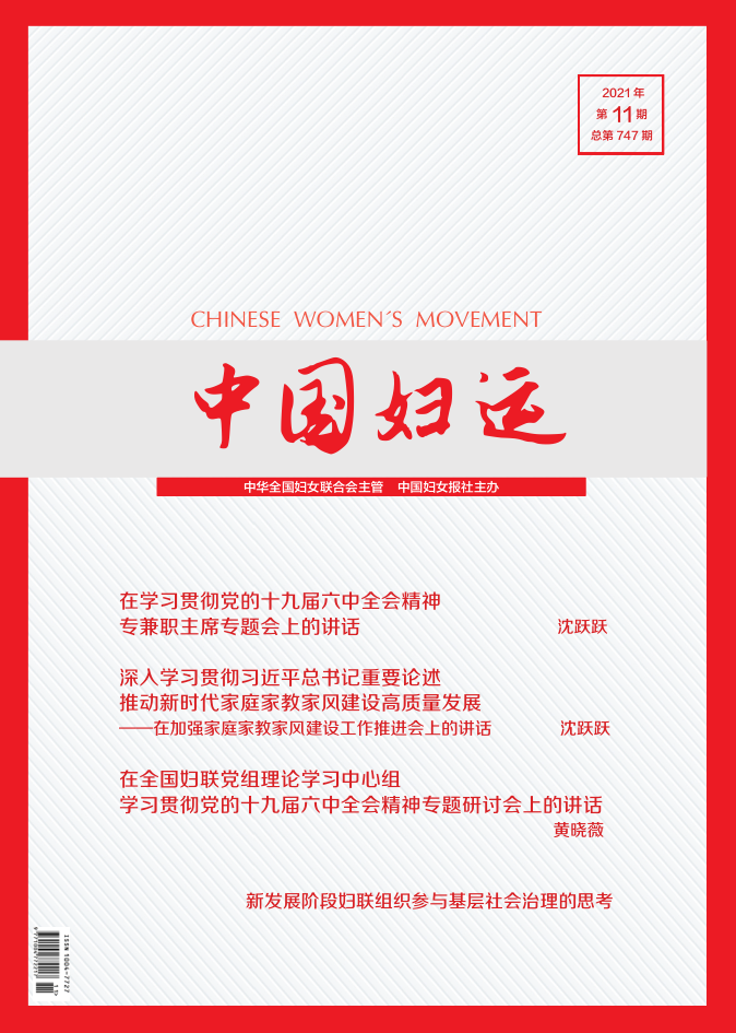 近日,学校党委书记郭翠芬结合近年来的研究成果,在全国妇联机关刊物《中国妇运》2021年第11期发表题为《新发展阶段妇联组织参与基层社会治理的思考》的理论文章。