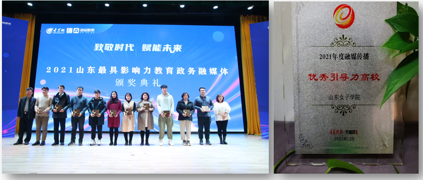 题记:2021年,党委宣传部以宣传报道牵引学院特色凝练,通过策划“学院应用型建设巡礼”专题报道,在省内高校第5家上线“学习强国”号,组织“特色发展”媒体座谈会等,在国家级省级媒体发稿113篇,在宣传报道与特色构建的关系中实现了供给创造需求、需求牵引供给的良性互动,收获良好的社会反响,被中国教育报社评为“教育新闻宣传先进单位”,被山东省互联网传媒集团评为“山东最佳教育政务融媒体”,被齐鲁晚报·齐鲁壹点评为“融媒传播优秀引导力高校”,校报《今日女院》五件作品获山东省高校校报好新闻奖。在提升学院传播力影响力的同时,推动了学院高质量发展。