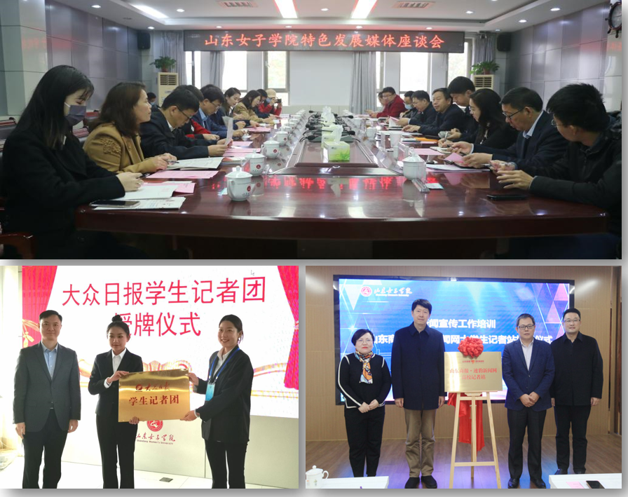 宣传报道不仅要豪情走出去,更要热情请进来。11月3日,学校召开“特色发展”媒体座谈会。为筹备好这次座谈会,党委宣传部提前策划,尊重媒体的独特视角,细致充分准备素材。人民日报、新华社、光明日报、中国教育报、中国妇女报、央广网、山东电视台、大众日报、齐鲁晚报、济南时报、山东商报等14家媒体参会,通过现场推介学校办学特色、校园实地采风,《山东女子学院:走好女性高等教育特色发展路》《奋进“百年女大”:山东女院强化“1+3+N”特色发展路径》《山东女子学院:“时间银行”进高校 志愿服务有回报》等文章在新华社、光明日报、中国妇女报、央广网等媒体陆续刊出,国务院妇儿工委网站给予转载,极大提升了学校的知名度和美誉度。同时,“大众日报·山东女子学院大学生记者团”,“山东商报·速豹新闻网山东女子学院记者站”相继成立,实现了学校与媒体共建“宣传共同体”的目标。