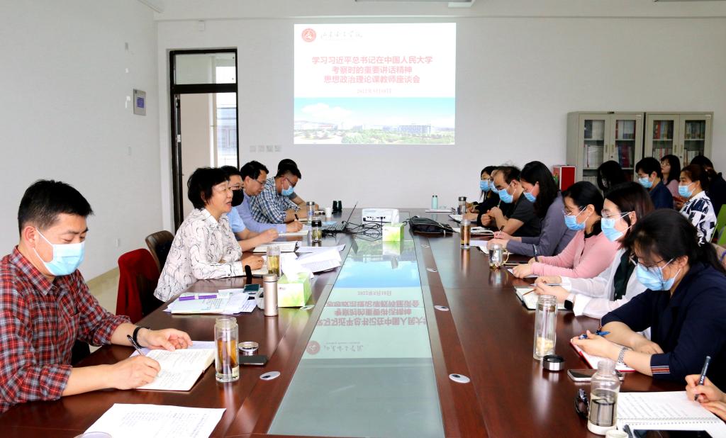 为深入学习贯彻习近平总书记考察中国人民大学重要讲话精神,进一步加强学校马克思主义学院建设,认真总结思政课教学改革、课程建设、学术研究等方面的经验,5月18日下午,马克思主义学院召开专题学习交流座谈会。学校党委书记郭翠芬出席会议,党委宣传部、教务处、教学质量监控与评估处相关负责同志及马克思主义学院全体教师参会。会议由马克思主义学院党总支书记主持。