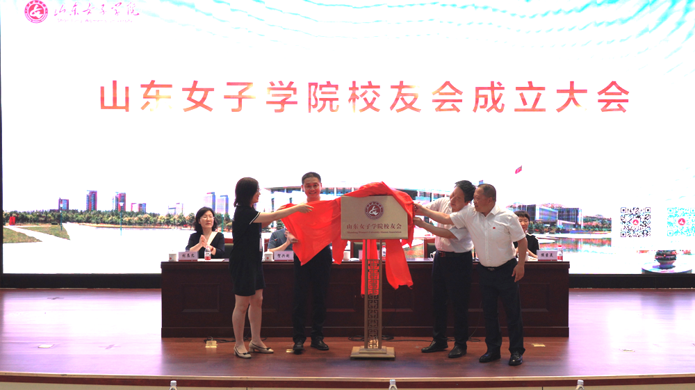 王军、盛国军等共同为“山东女子学院校友会”揭牌。
