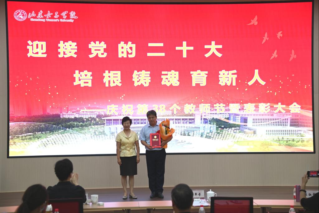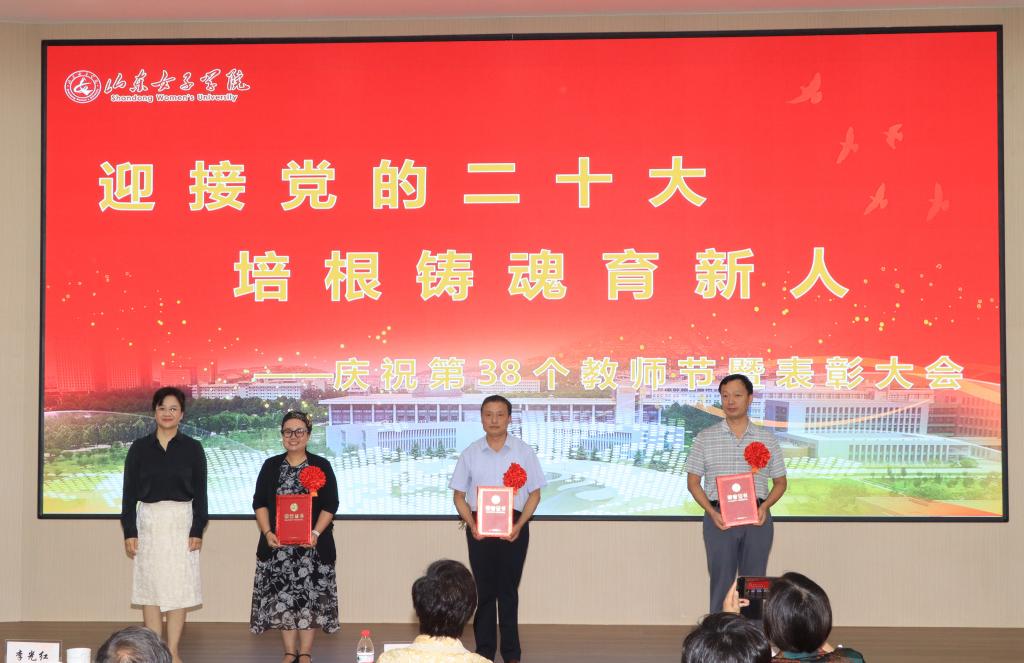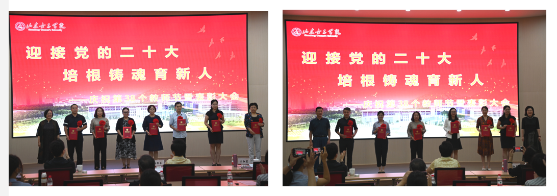 会上,对获得全国五一劳动奖章、山东省人民政府决策咨询奖、山东省泰山文艺奖、省级教学成果奖等国家和省级奖励的教师集体和个人、学校重大贡献奖获奖集体和个人、校级“最美教师”和教书育人楷模进行表彰,向从教30年教职工颁发了纪念品,新教师向老教师献花,老教师向新教师佩戴校徽,寓意着女院精神薪火不断、教书育人使命代代相传。获奖教师代表、新教师代表、青年学生代表分别致辞。青年学生献唱《春暖花开》,表达对学校美好明天的企盼。