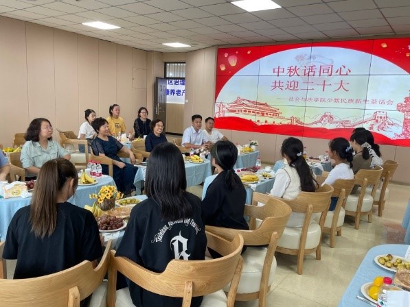 为迎接党的二十大召开,在中秋佳节和第38个教师节来临之际,社会与法学院于9月8日下午举办“中秋话同心,共迎二十大”少数民族新生茶话会,学校党委书记郭翠芬、统战部部长李君代表学校与少数民族新生代表欢聚一堂,话家乡特色、民族文化,谈专业选择、生活感受。
