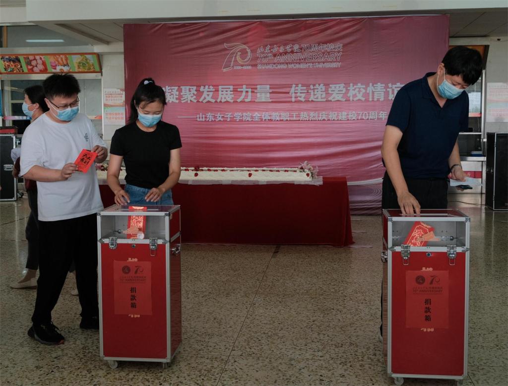 七十年风雨砥砺,筑梦前行;七十载筚路蓝缕,薪火相传。学校坚持“坤德含弘、至善尚美”的校训,秉承“自强不息、百折不挠、求实创新、不断攀登”的女院精神不断发展壮大。捐赠仪式上老中青教师代表分别发言,传递着爱校荣校的深厚感情。学校工会主席向全校教职员工发出爱心捐赠倡议,号召大家为助力学校长足发展贡献力量。