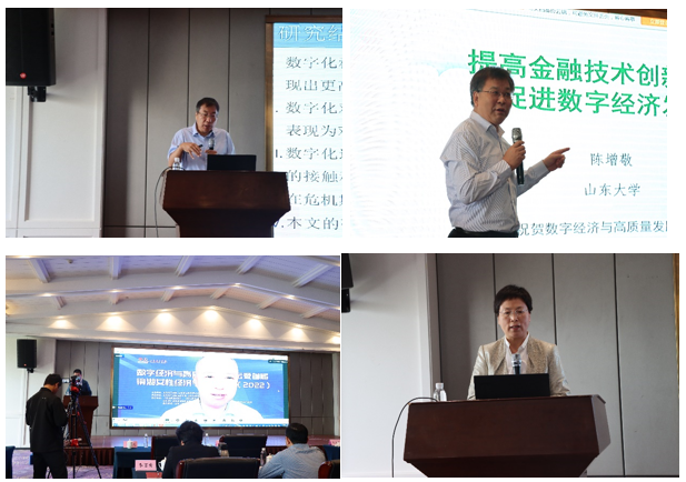 研讨会的主旨报告环节,北京师范大学经济与工商管理学院金融系主任、教育部金融学类专业教学指导委员会委员胡海峰先生,国家杰出青年科学基金获得者、山东大学中泰证券金融研究院院长陈增敬先生、浙江大学中国数字贸易研究院院长,求是特聘教授、博士生导师,浙江大学理论经济学数字经济理论与产业升级学科方向负责人马述忠先生,中国劳动和社会保障科学研究院二级研究员,全国妇联妇女发展部兼职副部长张丽宾女士,分别围绕数字化转型与企业韧性、金融技术创新与数字经济、数字贸易视域下的消费者、数字经济与妇女就业创业等作了主旨发言。厦门大学教授叶文振,山东大学教授、山东省大数据研究会会长石玉峰,山东财经大学教授、山东省跨境电商研究会会长王培志,山东大学教授曲创,山东交通学院经管学院院长耿中元教授、副院长孙烨教授,齐鲁工业大学经管学部主任李晔教授,山东农业工程学院经管学院院长李百秀教授,鼎力教育集团副总经理朱倩,学校人事处长李缨、科研处长董吉贺等也一同出席了开幕式和主题报告环节。