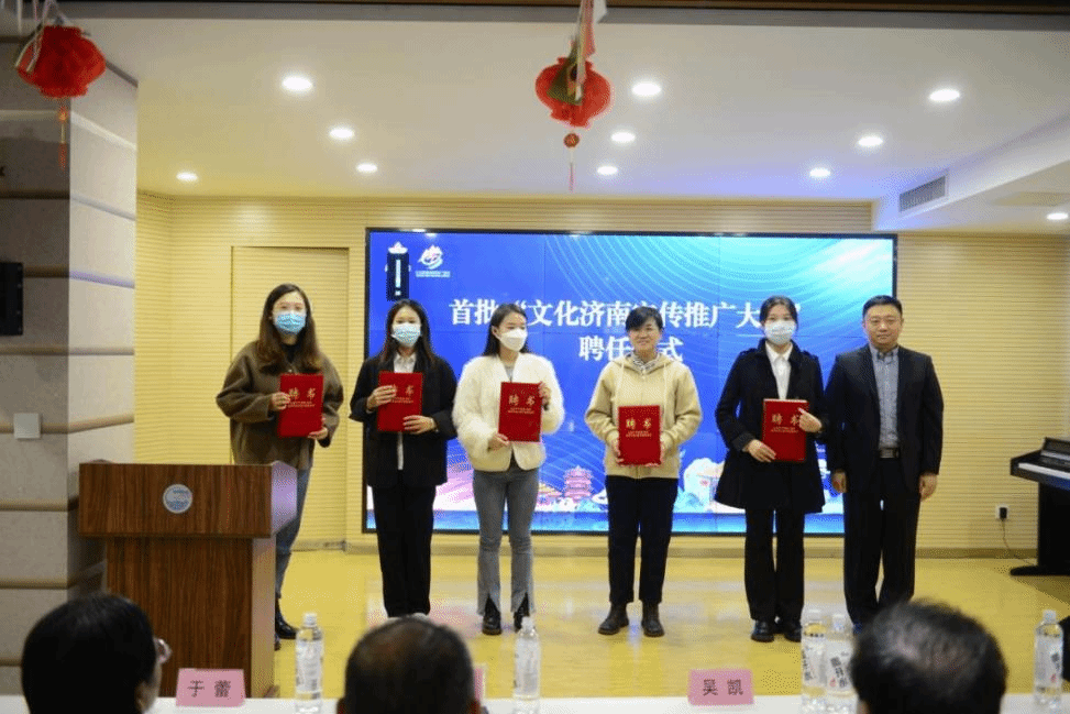 为贯彻落实济南市委市政府“五个济南”中的“文化济南”建设发展战略,11月10日,济南市文化和旅游局召开“文化济南宣传推广联盟”成立大会。部分驻济高校和知名企业作为企事业单位代表,文旅博主和专家学者等参加成立大会。我校旅游学院作为济南市首批“文化济南宣传推广联盟”成员单位,被授予“文化济南宣传推广基地”荣誉称号。2021级旅游管理专业陈梦晴同学,空中乘务专业刘丹同学当选宣传推广大使,并授予荣誉聘书。