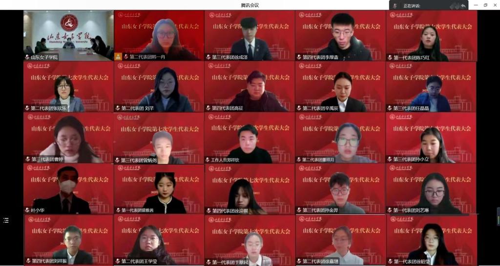 1月5日,山东女子学院第七次学生代表大会线上召开。党委副书记、校长李光红出席开幕式,党委统战部、学生工作部(处)、团委等部门负责同志,各学院学工主任、团总支书记以及来自全校12个学院的166名学生代表参会。