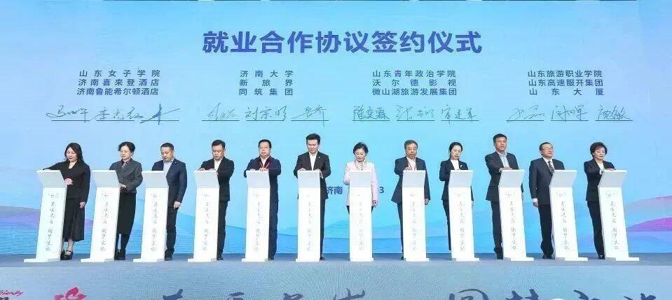 3月11日,山东省文旅企业专场招聘活动启动仪式暨济南市文旅企业招聘会在济南舜耕国际会展中心举办。学校党委副书记、校长李光红出席启动仪式,代表学校与济南喜来登酒店、济南鲁能希尔顿酒店签订就业合作协议。