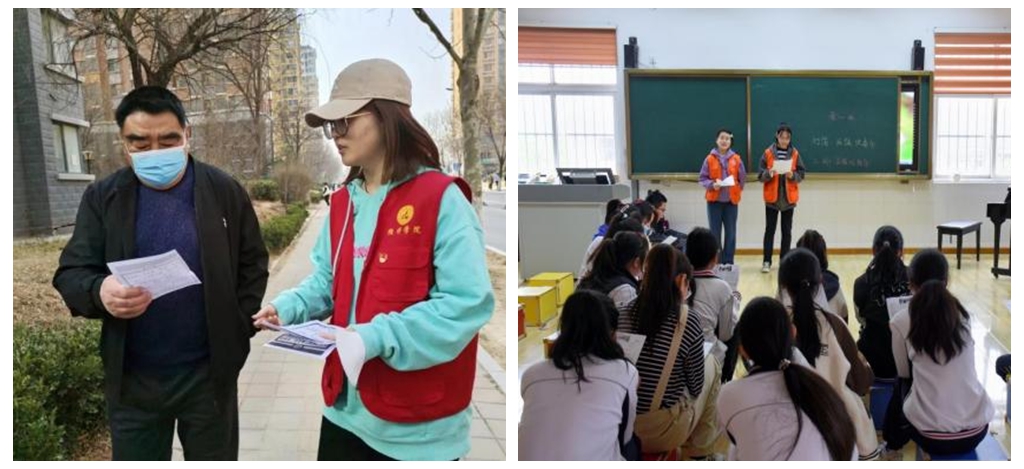 经纬学社团支部、童梦奇缘儿童戏剧社团支部、春雨合唱团社团团支部、养老管理精英协会团支部学生结合专业所学,走进社区开展志愿服务。在常春藤社区,志愿者组织开展“防诈反诈小课堂”,宣传反诈骗知识,分发防范网络诈骗宣传单。志愿者们耐心细致的向社区居民讲解反诈骗知识,普及诈骗常见套路,提醒大家时刻保护自己的人身财产安全,社区居民对志愿者们的服务给予充分认可,表达了支持与感谢。