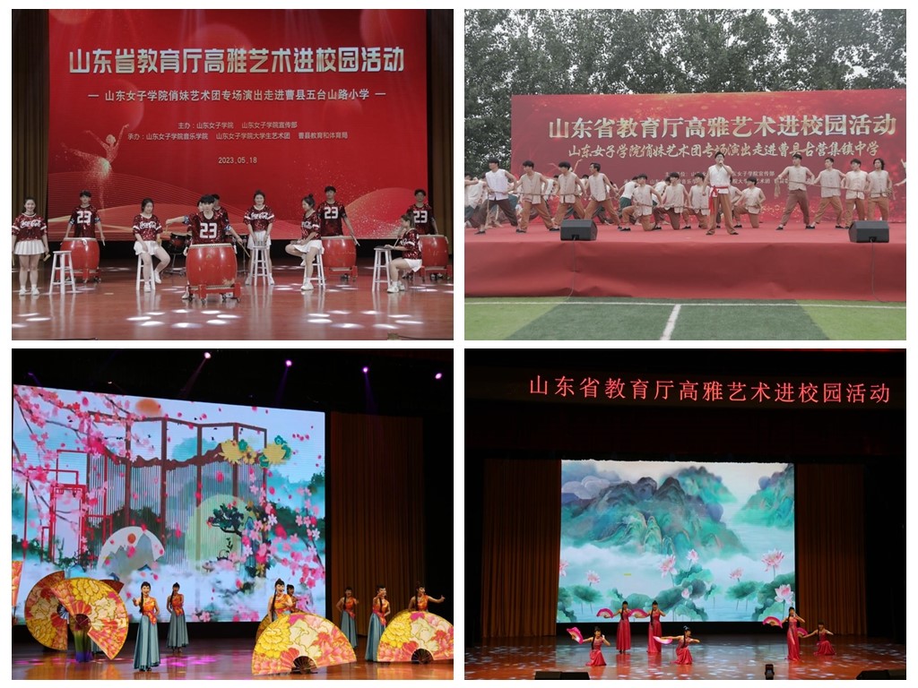 为深入贯彻落实习近平总书记关于美育工作的重要论述和全国教育大会精神,加强和改进学校美育,引导青少年学生厚植爱国情怀、陶冶道德情操、坚定文化自信、提升学生艺术素养和文化修养,5月18日-19日,音乐学院俏妹艺术团167人走进曹县古营集镇中学、曹县五台山路小学、长清实验小学、长清大学城实验学校举办4场山东省教育厅高雅艺术进校园活动。